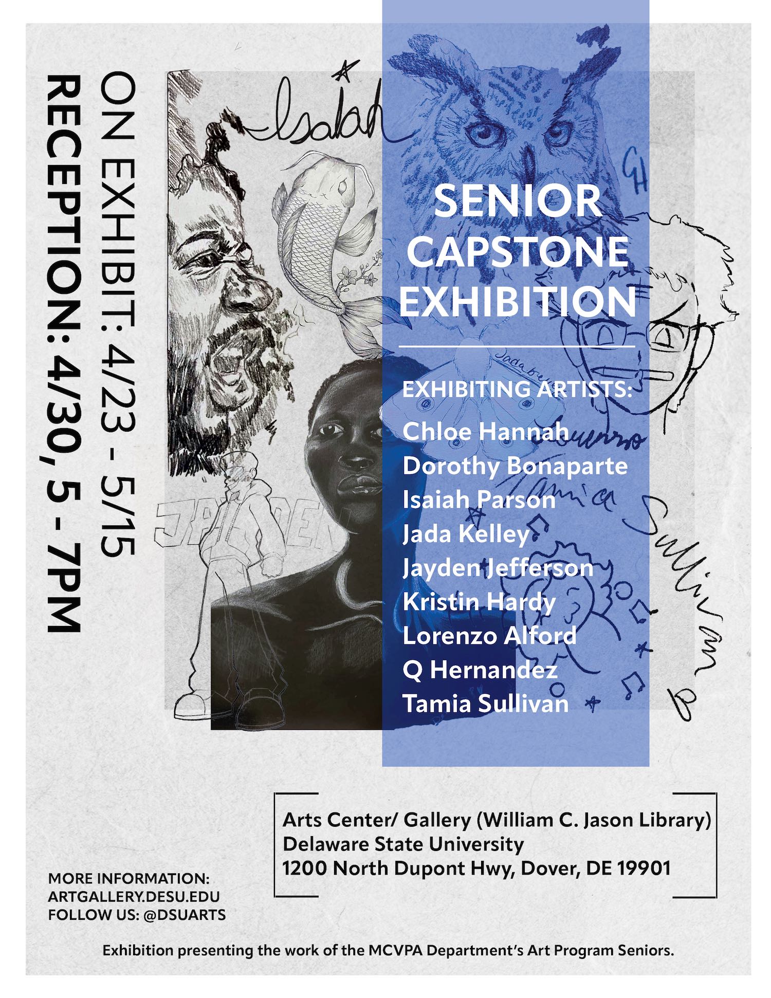Presenting the Capstone work of Art Program (Mass Communications, Visual and Performing Arts Department) Students: Infinate Dreams (Tori Albanese), TyShawn Allston, Heaven Booker (Helebo), Taylor Gordon, Mikal Morris, Jada Hunter, Zuhrye Lenoir, Erika Lindqvist, Brandi Nichols